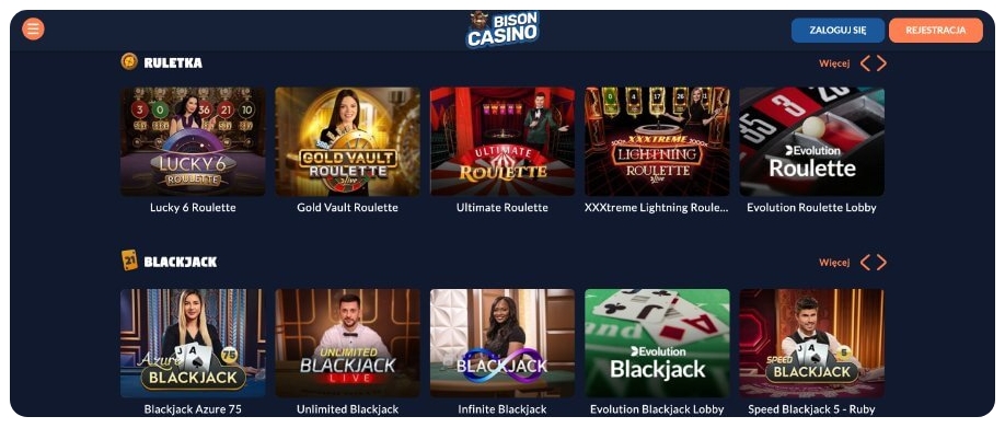 - Opcje z krupierem na żywo: Doświadcz ekscytacji w Ultimate Roulette i Infinite Blackjack w bison kasyno, dodając interaktywny element do swojej gry.