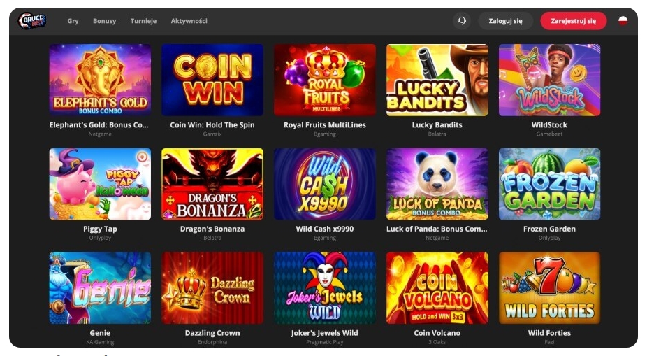 Bruce Bet Casino może poszczycić się imponującym wyborem gier, który zaspokaja różnorodne preferencje graczy. Znajdziesz obszerna bibliotekę zawierającą ponad 650 tytułów z krupierem na żywo oraz 115+ gier stołowych, zapewniając różnorodne doświadczenia w grze. Kasyno oferuje świetną mieszankę automatów online od najlepszych dostawców, takich jak Netgame, Spinomenal i Pragmatic Play. Niezależnie od tego, czy preferujesz klasyczne maszyny owocowe, czy nowoczesne automaty Megaways, każdy znajdzie coś dla siebie.