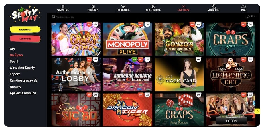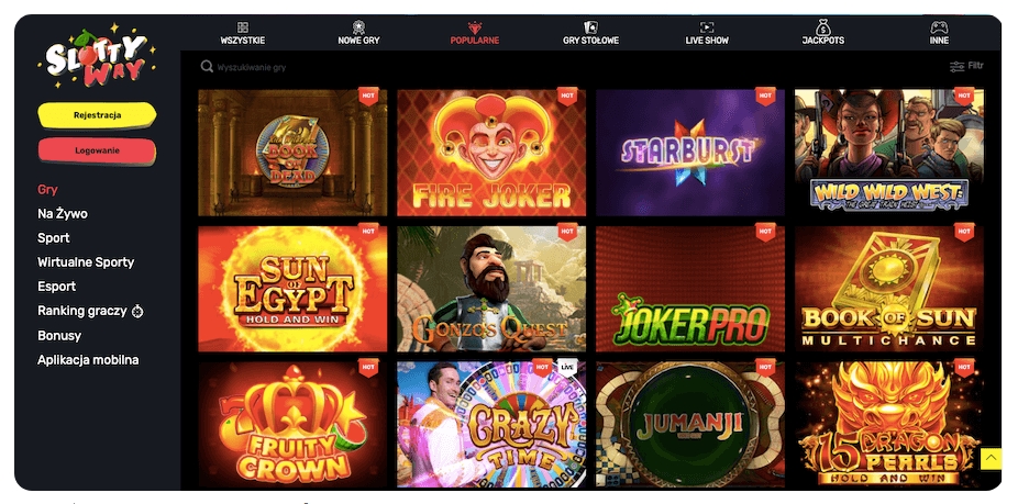 Kiedy eksplorujesz wybór gier w SlottyWay, odkryjesz ogromną gamę ponad 2500 gier, w tym ponad 2000 slotów. Kasyno współpracuje z ponad 70 renomowanymi dostawcami oprogramowania, takimi jak NetEnt, Microgaming i Play’n Go, co zapewnia różnorodne i wysokiej jakości opcje gier. Z kategorii obejmujących popularne sloty, gry na żywo i jackpoty, na pewno znajdziesz coś, co odpowiada Twoim preferencjom.